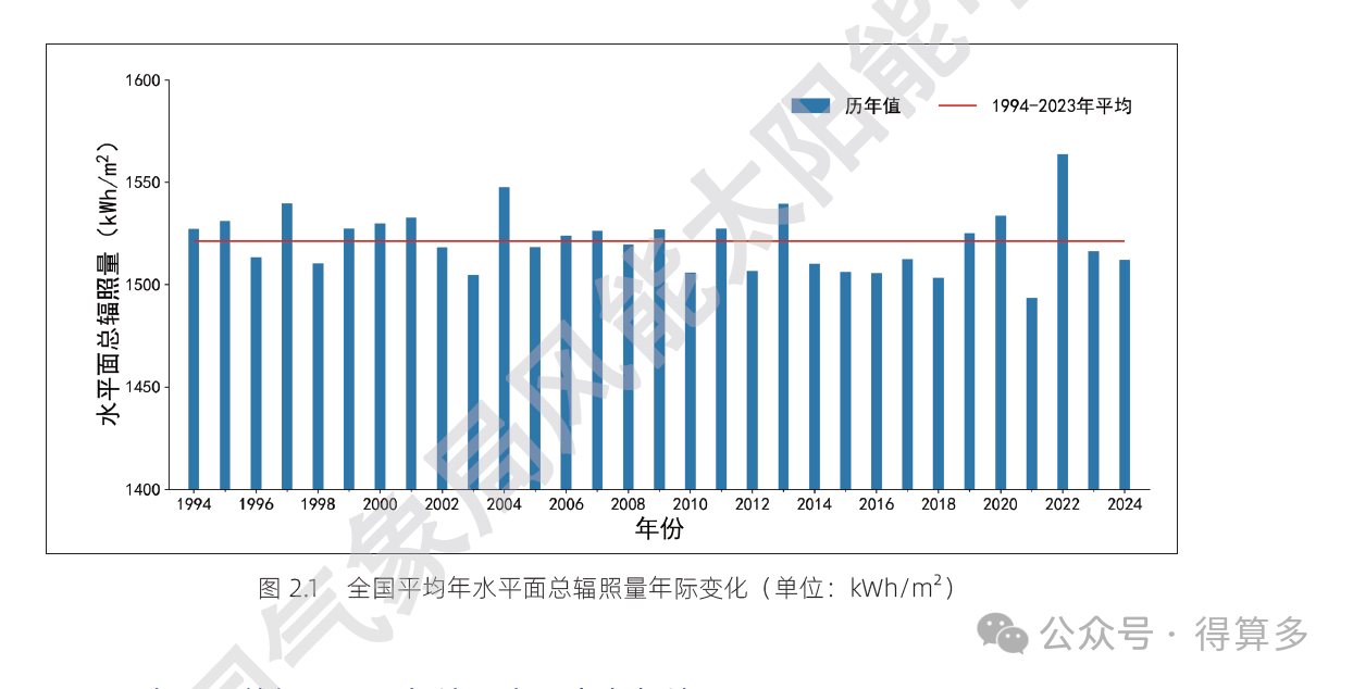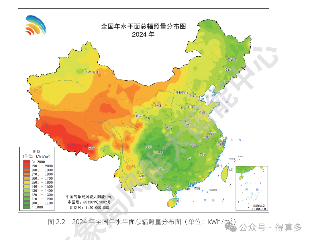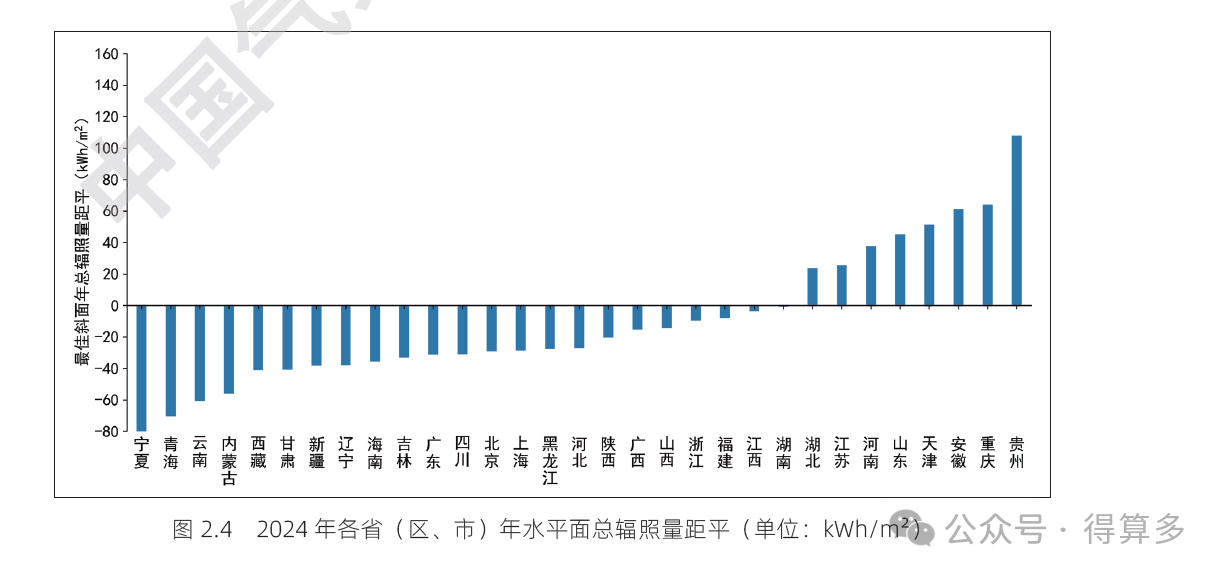 各省(区、市)2024 年水平面总辐照量具体数值详见附录5。