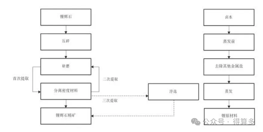 根据锂矿资源现有开发技术,花岗伟晶岩型(锂辉石、锂云母)、盐湖卤水型锂矿资源是勘察开采的主要锂资源。