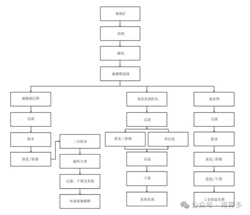 碳酸锂通过溶解、除杂等工艺,由碳酸锂可制得氟化锂、医用碳酸锂以及电池级碳酸锂,其中氟化锂用于陶瓷、化工等行业,医用碳酸锂用于制药,电池级碳酸锂用于生产正极材料、六氟磷酸锂、钛酸锂。