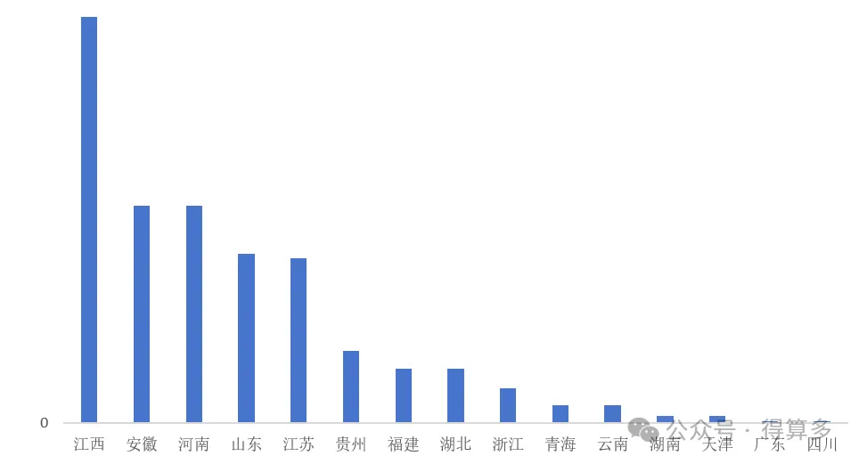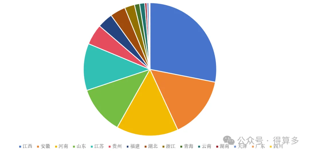 车研咨询(www.cheyanzixun.com)统计数据显示,截止2024年,我国六氟磷酸锂产能分布在全国15省/市/自治区。前省份产能合计占比接近60%。