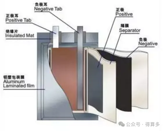 软包锂电池所用的关键材料(正极材料、负极材料及隔膜)与传统的钢壳、铝壳锂电池之间的区别不大,最大的不同之处在于软包装材料(铝塑复合膜),这是软包锂电池中最关键、技术难度最高的材料。软包装材料通常分为三层,即外阻层(一般为尼龙BOPA或PET构成的外层保护层)、阻透层(中间层铝箔)和内层(多功能高阻隔层)。