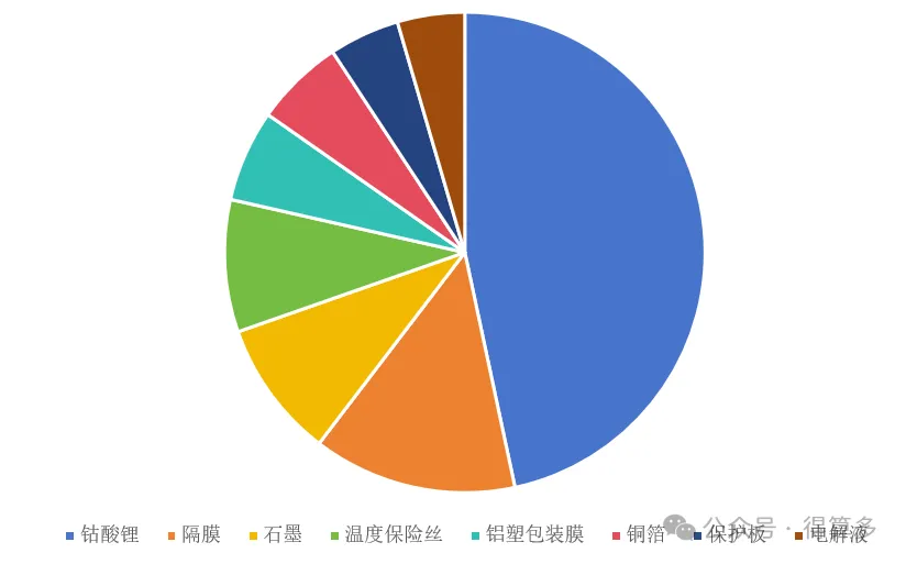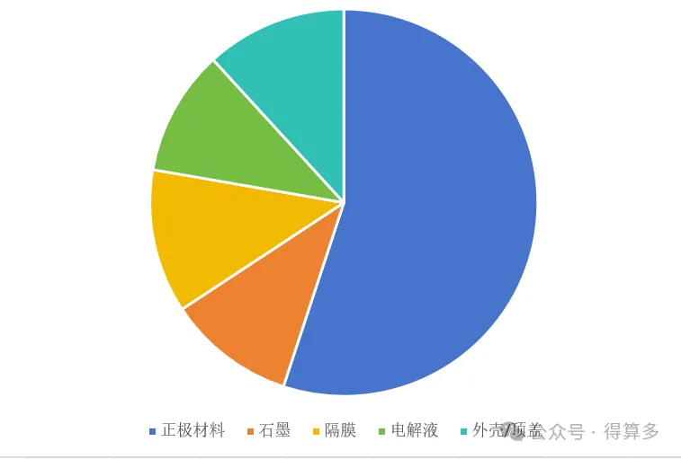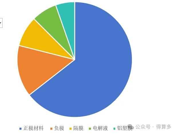 正极材料占锂电池总成本的比重最大,超过30%。负极材料占锂电池成本低于10%,电解液占比在5%左右。