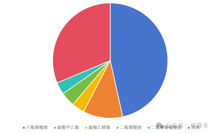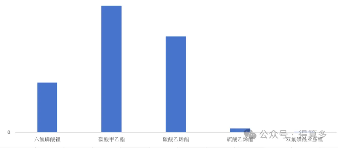 电解液生产成本中,锂盐(六氟磷酸锂)占比50%,有机溶剂占比30%,添加剂占比10%。