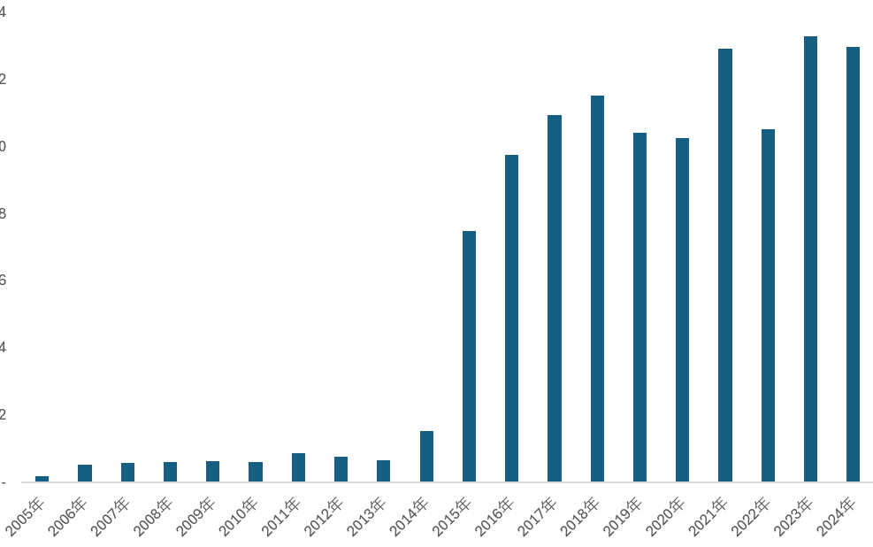 全球各国风电:2005-2024年菲律宾年风电发电量规模走势