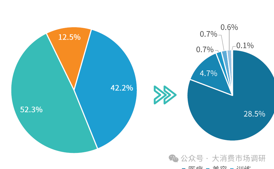 2023年,中国宠物行业市场规模已到达2793亿人民币,而其中宠物服务行业(包含宠物医疗〉占比达42.2%,仅次于宠物食品。我们认为在当前宠物行业初步成熟,养宠文化逐渐形成,宠物行业的发展重心将逐渐从刚需性的宠物食品向宠物用品、宠物服务等弹性消费转移。