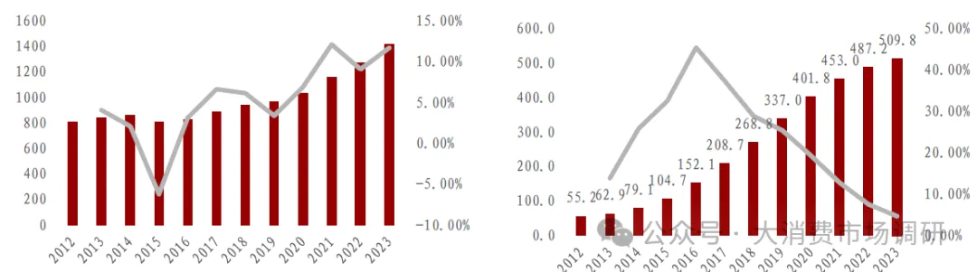 我国宠物食品行业起步较晚,市场规模年复合增长率显著高于全球。2012年至2023年,全球宠物食品市场规模的CAGR为5.23%。2012至2023年我国宠物食品市场规模呈现逐年增长的趋势,截至2023年我国宠物食品市场规模达到509.8亿元,2012年至2023年CAGR达22.39%,显著高于全球宠物食品市场规模增速。相比其他宠物产业链环节,宠物食品产业贯穿宠物抚养的整个生命周期,消费频次较高。高消费频次伴随着消费升级的整个过程,带来了宠物食品人均消费量及消费金额的不断提升;此外,随着我国宠物数量的不断增长、宠物饲养渗透率的日渐提升,我国宠物食品市场有望随之继续保持增长。