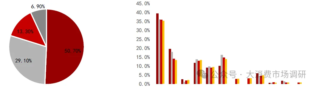 宠物营养品市场规模增速高于主粮和零食。根据《2023-2024年中国宠物营养品消费报告》数据显示,近年来我国宠物营养品市场规模以较高的增速持续增长,2023年宠物犬营养品市场规模35.9亿元,宠物猫营养品市场规模36.3亿元,2020-2023年犬猫营养品市场规模CAGR为52.6%,高于主粮和零食市场规模增速。相对于主粮和零食,宠物营养品更偏向于可选品类,其发展成熟度会滞后于主粮和零食,目前处于快速发展阶段。随着宠主健康意识的提升,我们认为宠物营养品市场的增速仍会阶段性高于主粮和零食市场。