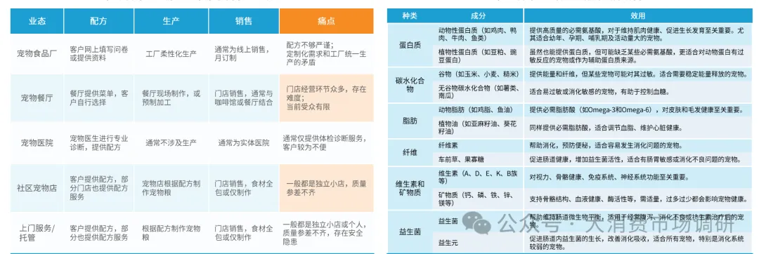 当前市场上出现了不少专注于宠物定制餐饮的商家,根据宠物个体的特定需求(如品种、年龄、体重、健康状况、活动水平及任何食物敏感性或过敏史),由专业的宠物营养师或兽医设计的个性化饮食方案,进而设计出个性化的饮食菜单,并提供配送服务。这一赛道的参与者还在不断尝试通过科技创新,如利用大数据分析宠物饮食偏好和营养需求,以优化服务体验和提升产品品质。