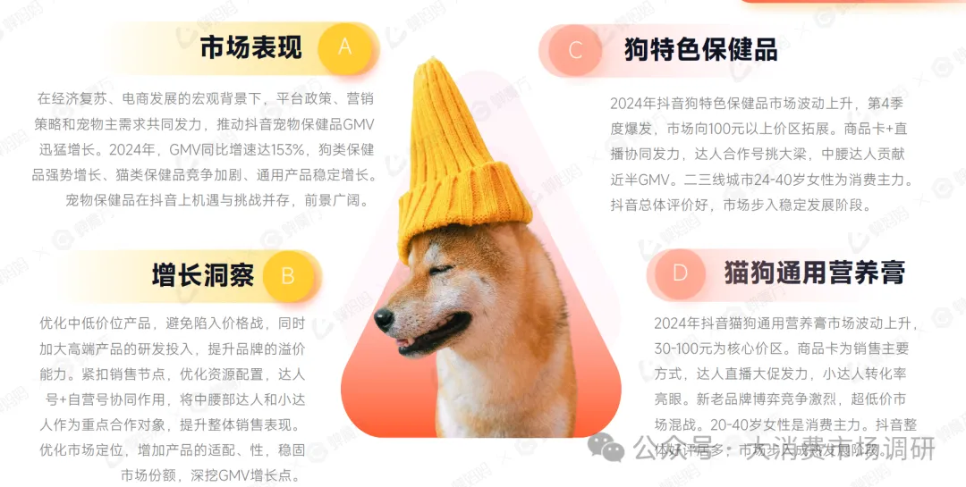 “猫狗通用营养膏”GMV略高于宠物保健品均值,但同比增速位居第三,表明仍在高速成长阶段。