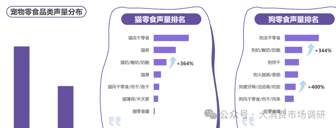 从市场规模来看,犬类消费仍占主导地位,但猫类消费的同比增速更为强劲。