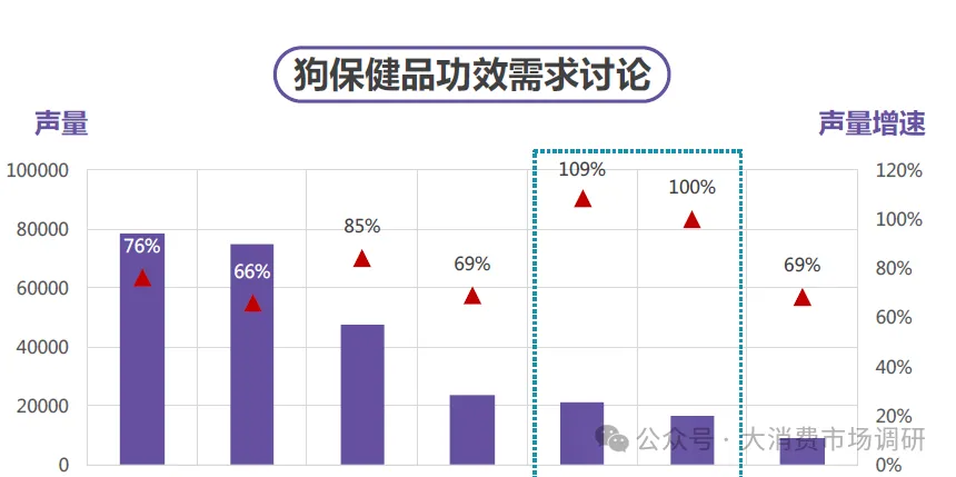 宠物狗调理肠胃、美毛护肤是基础刚需,提升免疫、关节保护正快速崛起,预防性健康管理开始普及