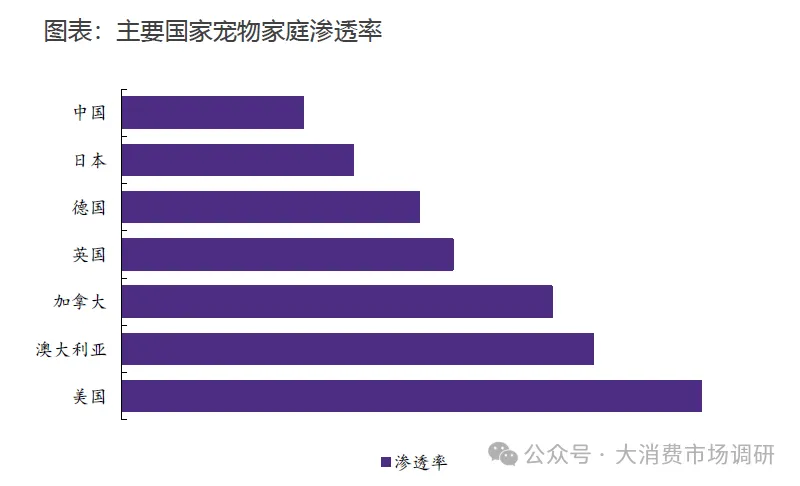 中国宠物渗透率与海外对比存在数倍提升空间。2024年,中国家庭养宠率达到约24%,但将国内宠物渗透率与美国等成熟宠物市场相比,仍存在约3倍的差距;与日本等与国内思想理念和居住环境相近的国家相比,我国养宠渗透率也较低。中国养宠家庭数量以及户均养宠数量具有较大增长潜力,随着养宠渗透率的提升将进一步释放潜在市场空间。