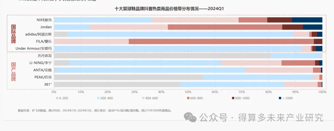 Ø 十大篮球鞋品牌抖音热卖商品价格带分布情况: