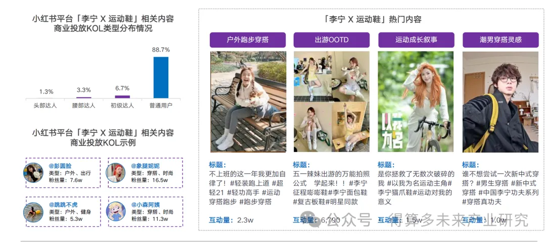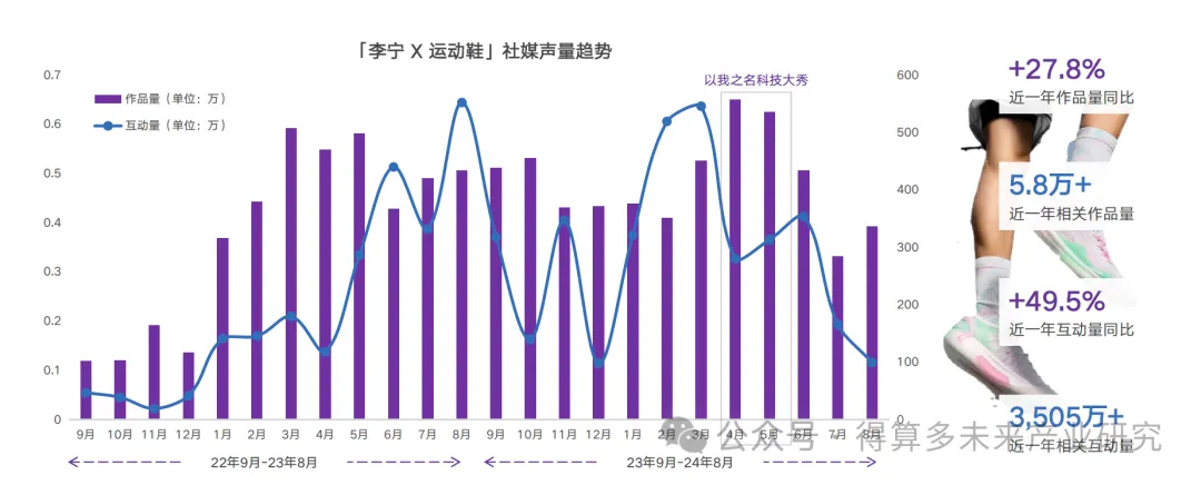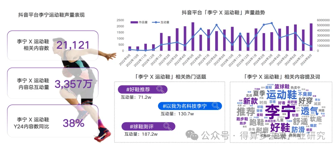 • 李宁运动鞋过去一年作品量增长27%+,互动量增长49%+,影响力及讨论度显著提升。