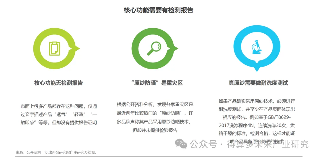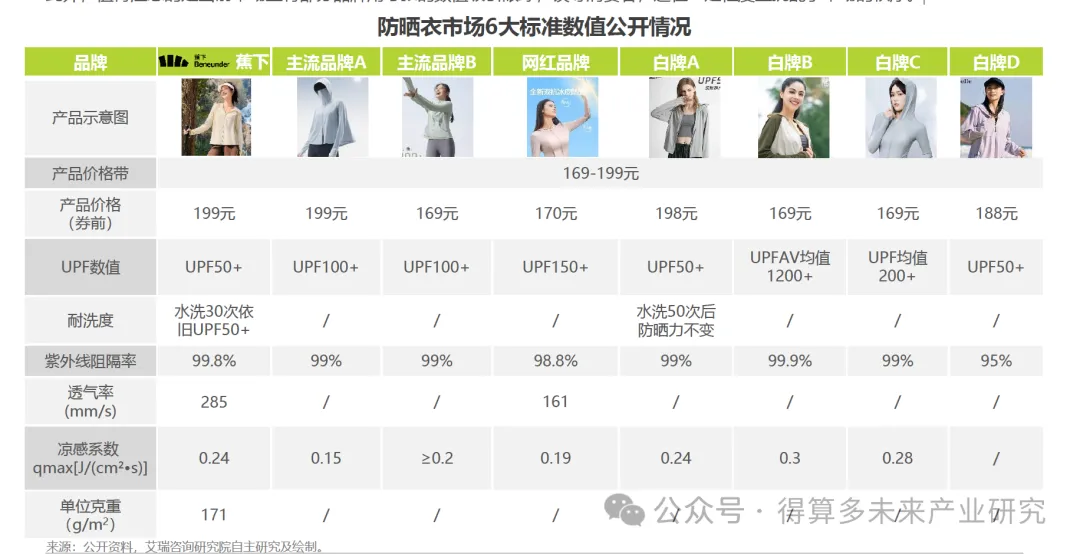 当前主流防晒衣产品对于产品性能数值的公布仍有缺失