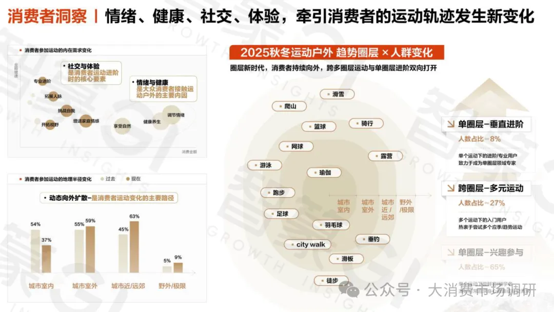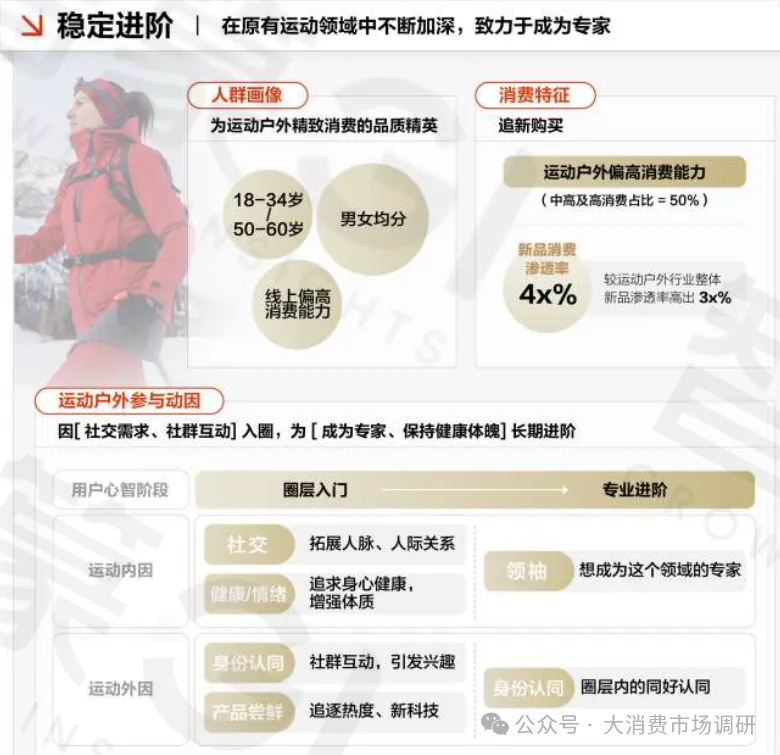 近三成用户为多元运动者,在日常生活与新兴/趋势运动之间横跨,并由此衍生出多元圈层及品牌的消费特征;