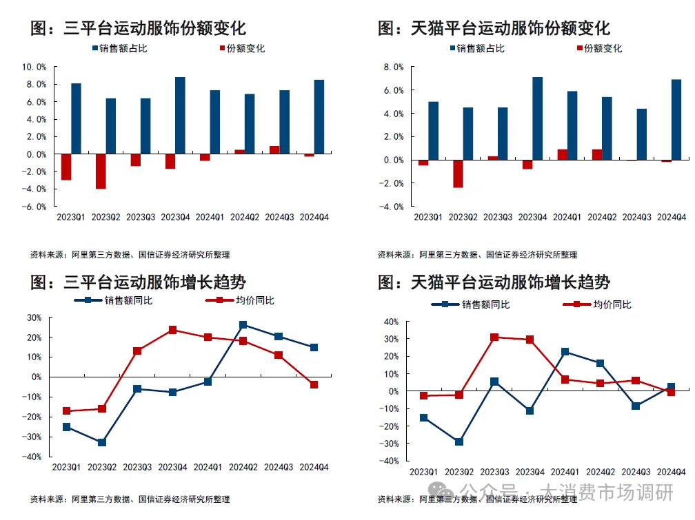 ②运动服饰2024Q4销售额同比+2.6%,均价同比-0.7%。