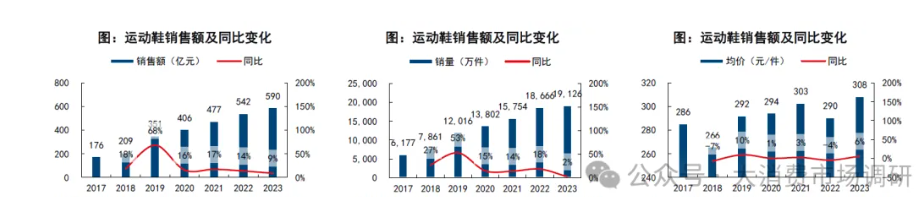 篮球鞋子品类:2021年以前快速增长,2022年增长弱于整体,2023年明显量价齐跌