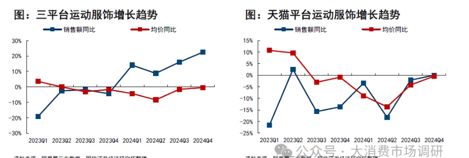 ②运动服饰2024Q4销售额同比+22.5%,均价同比-0.4%;
