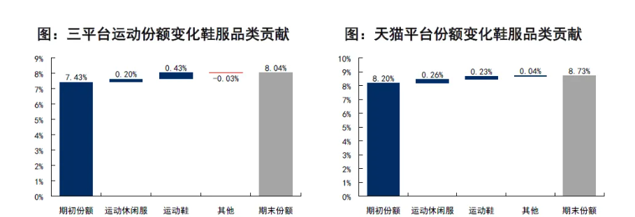 ②运动鞋中,跑步鞋+42.6%、篮球鞋-4.9%、运动休闲鞋+33.5%、板鞋+18%;