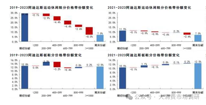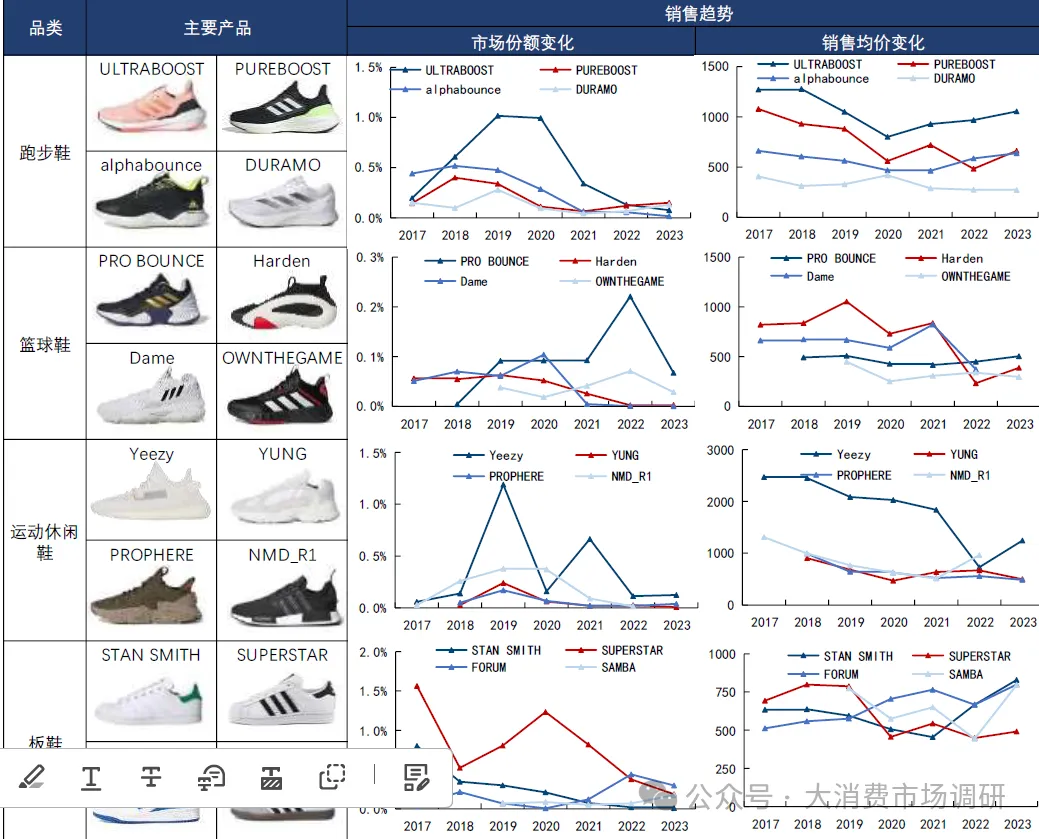 阿迪达斯:相比疫情前份额下降明显,主要受高价格段运动休闲鞋及跑鞋拖累,板鞋表现较为稳定