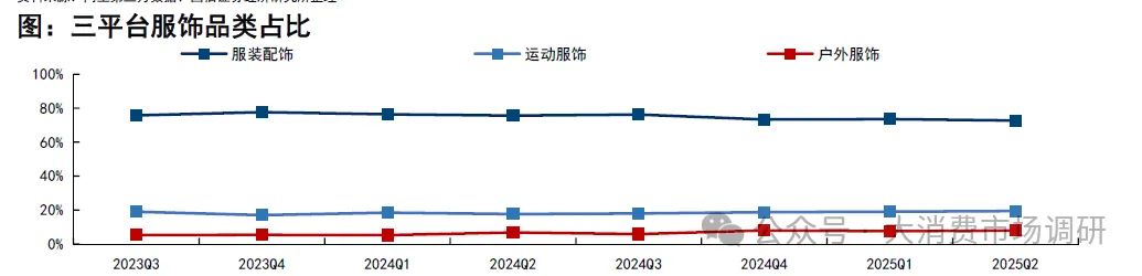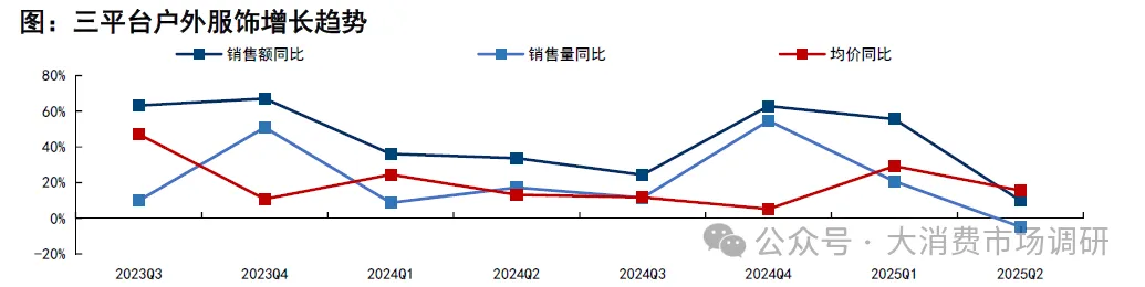 元)同比-2.8%;户外服饰2025Q2销售额(139亿)同比+9.9%,均价(119元)同比+15.5%。