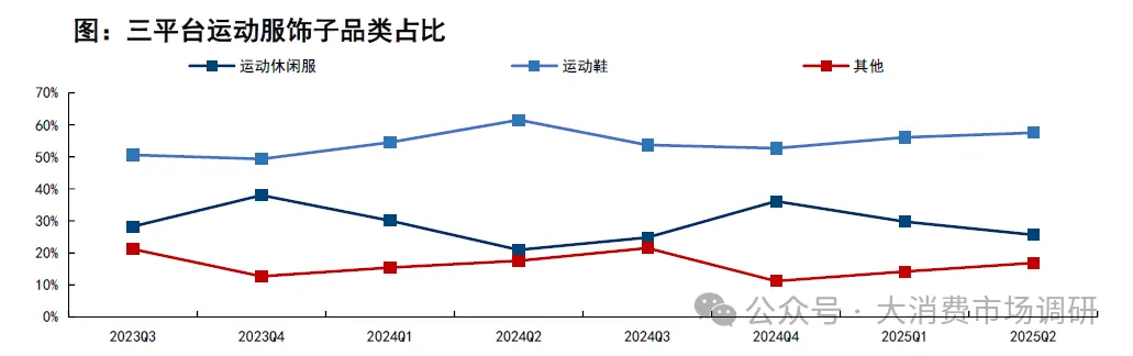 ② 运动鞋2025Q2销售额占比57.5%,同比变动-4个百分点。