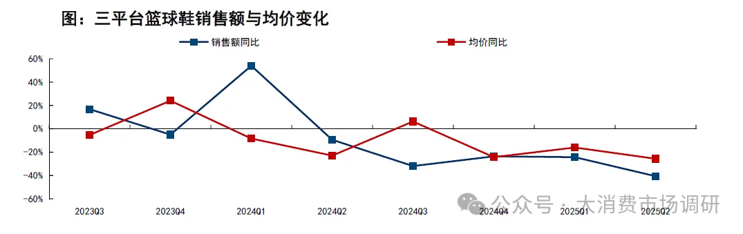 ② 篮球鞋2025Q2销售额(0.3亿)同比-40.6%,均价(252元)同比-25.7%。