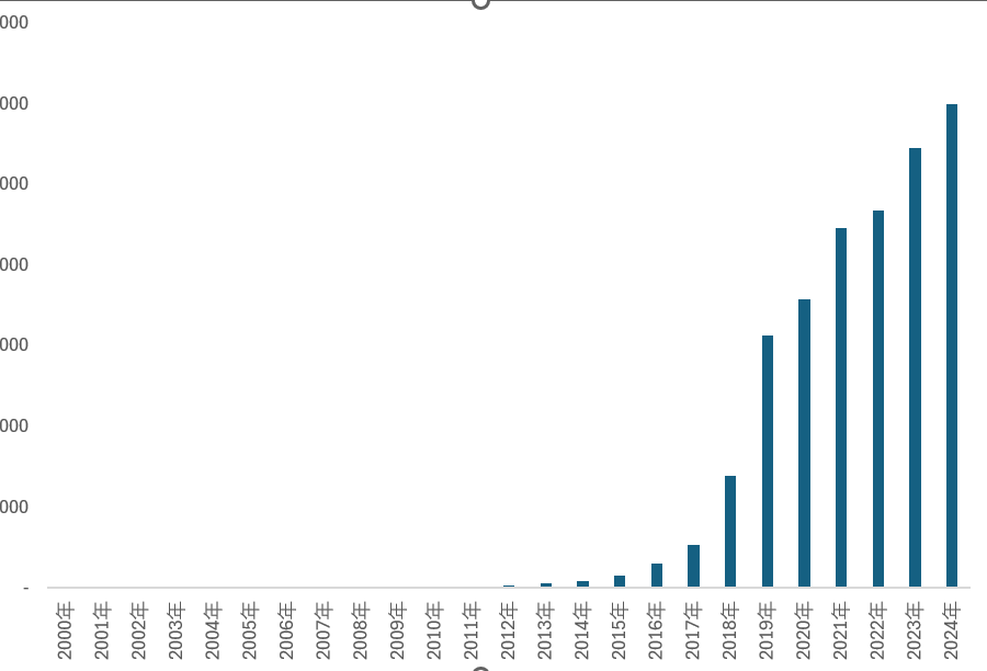 全球各国光伏发电:2000-2024年墨西哥历年光伏发电装机容量规模走势