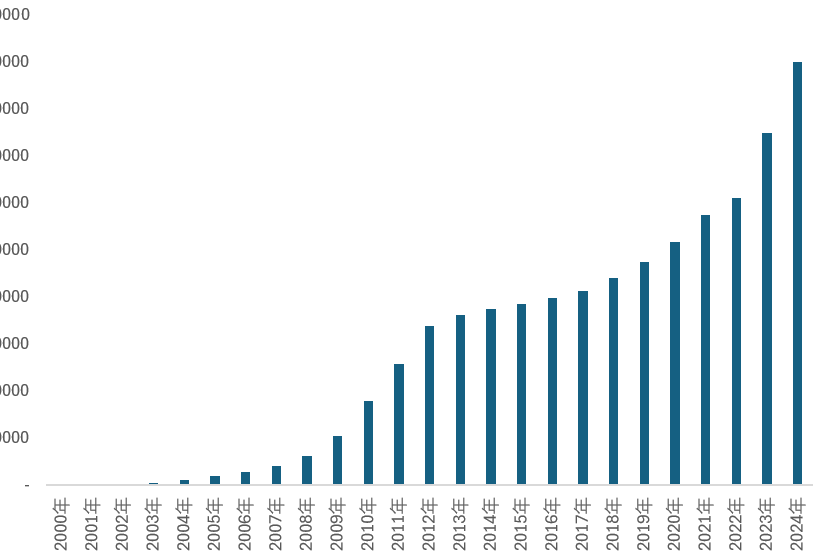 全球各国光伏发电:2000-2024年德国历年光伏发电装机容量规模走势