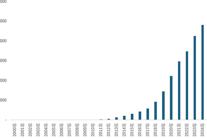 全球各国光伏发电:2000-2024年荷兰历年光伏发电装机容量规模走势
