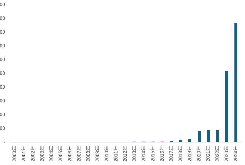 2000-2024年历年光伏发电装机容量规模走势