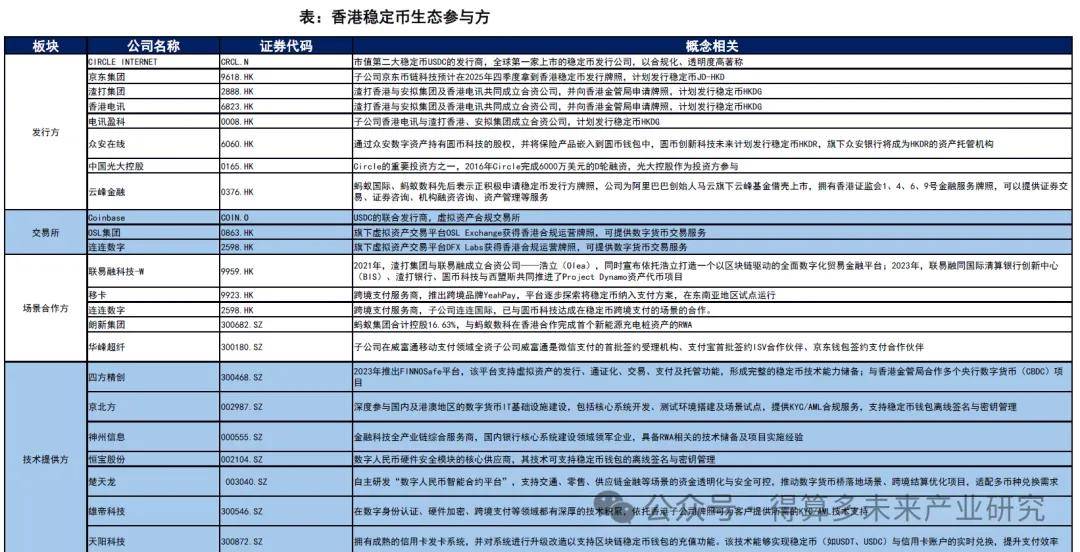 • 京东币链科技:开发港元稳定币JD-HKD,聚焦跨境支付、供应链金融等场景,技术架构基于JD Chain区块链平台。