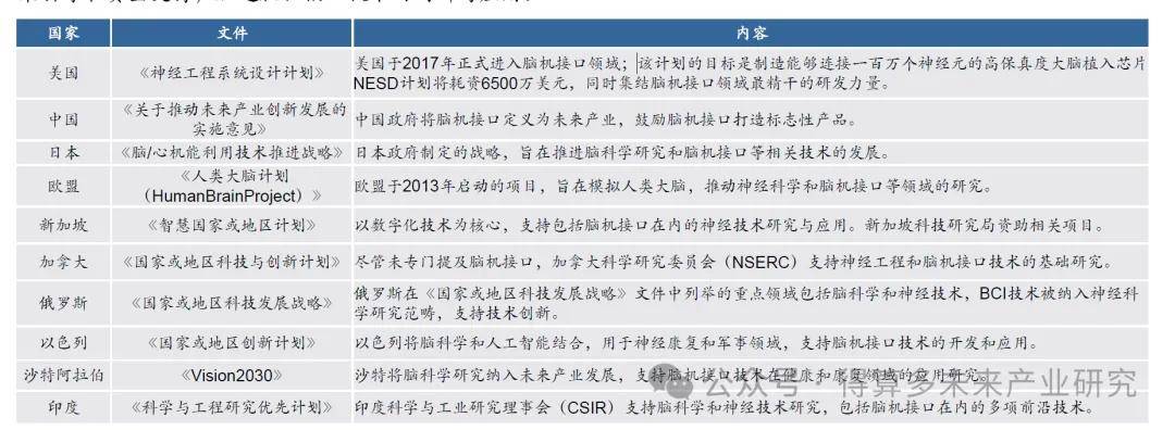 全球政策现状:主流国家均支持或推动脑机接口产业发展