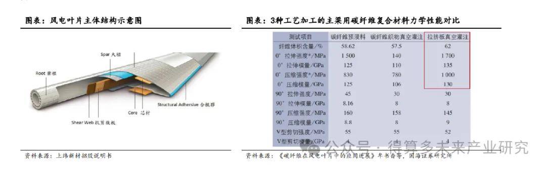 2)碳纤维拉挤板在风电叶片中的应用将大幅提升