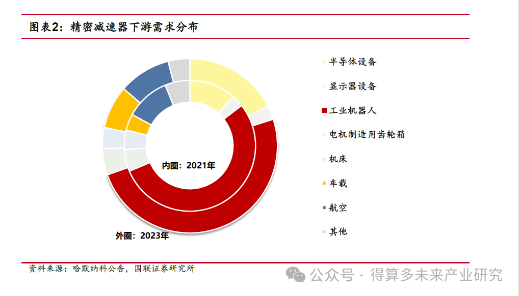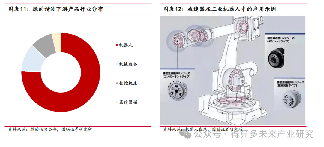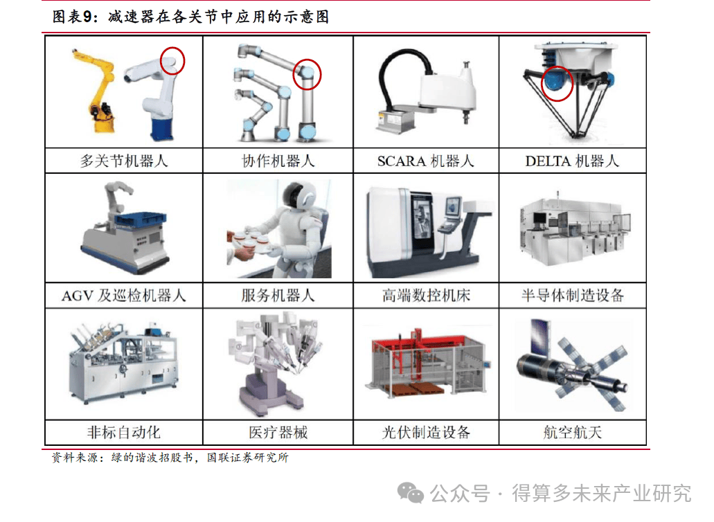 精密减速器一般在精密器械中均有应用。精密减速器可以作为旋转关节发挥传动作用,因此在工业机器人、高端数控机床、半导体设备、医疗器械、航空航天等领域均有较多的应用。