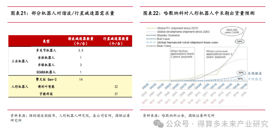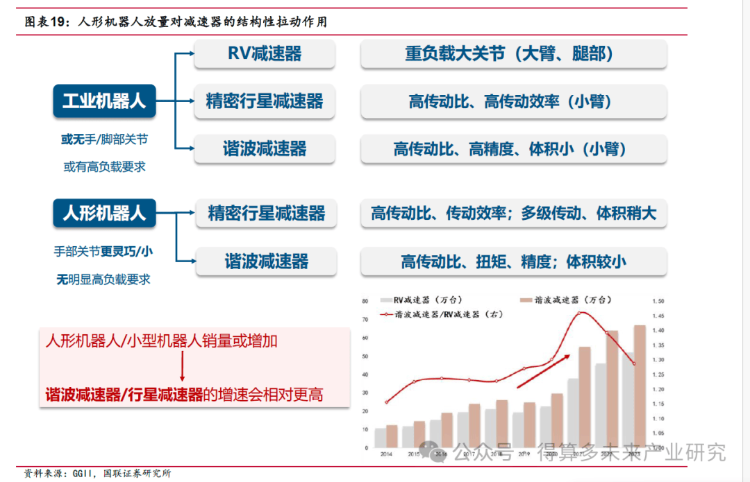 人形机器人会成为减速器下一个需求拉动点,不同传动方案需要的减速器的种类和数量都有不同。