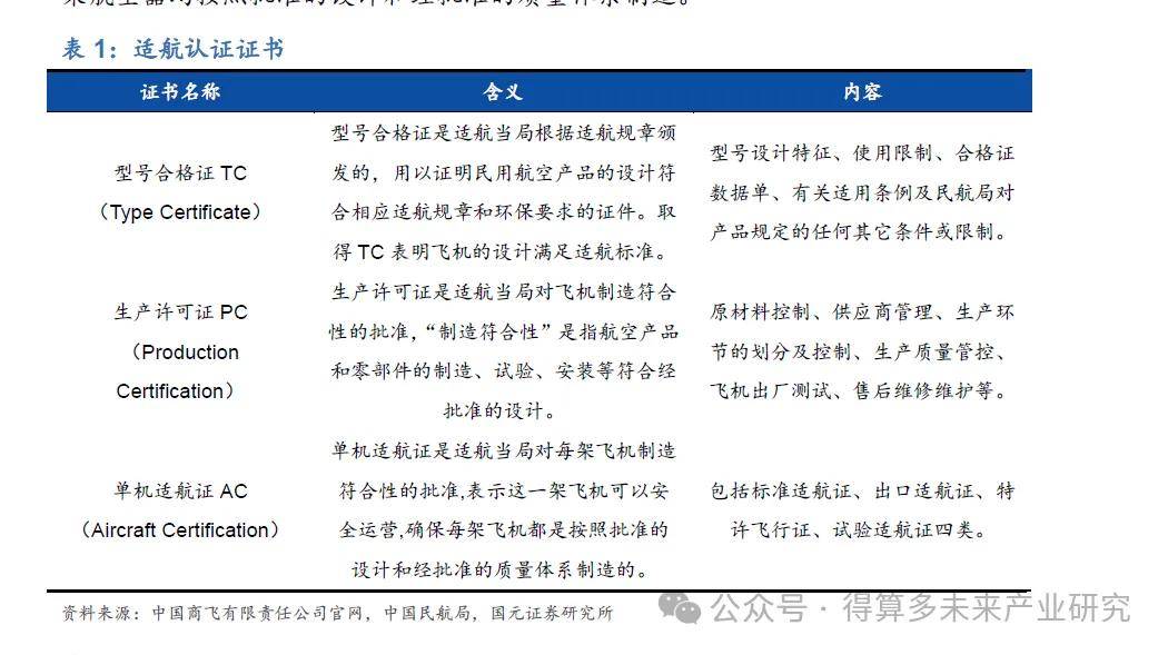 适航合格审定:在适航检查人员对航空器完成适航检查、确认航空器符合经批准的型号设计并处于安全可用状态后,适航监察员即可完成适航证(Airworthinesscertificate,简称AC)的签发。包括标准适航证、出口适航证、外国适航证认可书和特许飞行证等。持有PC无需进一步证明即可获取 AC。取得单机适航证证明每架航空器均按照批准的设计和经批准的质量体系制造。