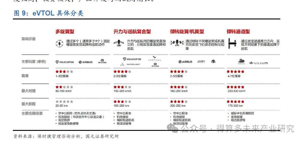 倾转涵道型:具有高速和长航程能力,效率较高且兼具舒适性和安全性,但技术难度极高,投资较大,产品开发与测试周期长。