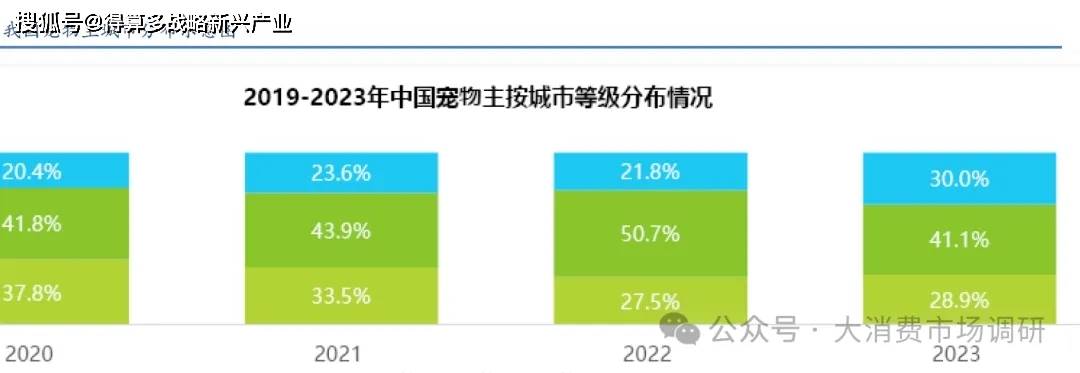 宠物主画像:从宠物主的城市分布来看,宠物主一线城市占比在近几年呈现下降态势,而三线及以下城市则由2019年的20.4%提升至2023年的30%,原因可能在于:一方面,一线城市政府为了加强城市规范养宠而推出的更为严格的政策法规降低了部分居民的养宠意愿;另一方面,三线及以下城市居民的消费能力提升带动了宠物主的增长。