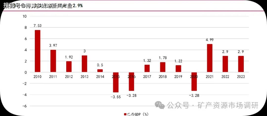 关键宏观经济指标持续向好,巴西经济呈现乐观前景。巴西国内生产总值在2020 年因为新冠疫情导致收缩,随后便出现强势的复苏。2021 年增长率4.99%;2022 年增长率2.9%;2023 年的增长率为2.9%。从经济稳定性角度看,巴西通货膨胀率呈下降趋势。2023 年,巴西的通货膨胀率达到峰值后快速下降,全年收于4.62%,低于4.75%的目标上限。