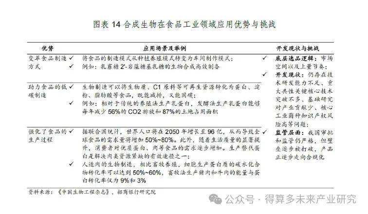 潜力的应用方向。一是高附加值蛋白,如乳蛋白、卵蛋白、乳铁蛋白等,市场需求量和接受度较大,合成手段日趋成熟,市场竞争逐步转入下游生产阶段。波士顿咨询公司数据显示,到2035年,替代蛋白市场规模有望达到2900亿美元。