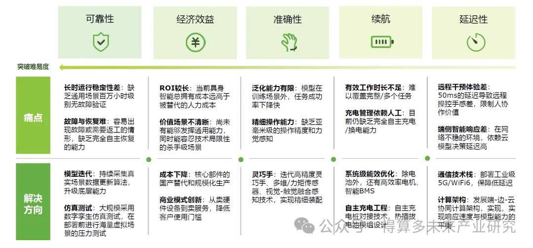 具身智能的商业化并非如LLM大语言模型的单点突破,而是复杂的系统工程。其大规模应用的拐点将在续航、延迟、执行、可靠性与经济效益等五大维度均跨过可用门槛,并形成正向增强的价值飞轮之时。当前,行业正处于从技术验证到价值闭环的关键攻坚期。