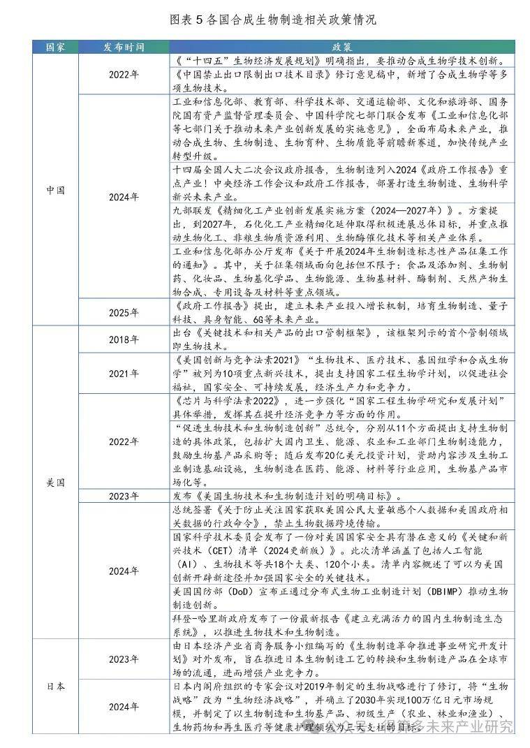 综上,2024-2025年我国出台的一系列生物制造政策,充分体现了国家对这一战略性新兴产业的高度重视和长远规划。这些政策不仅为生物制造产业的发展提供了明确的方向和有力的支持,也为我国在全球生物制造领域的竞争中奠定了坚实的基础。