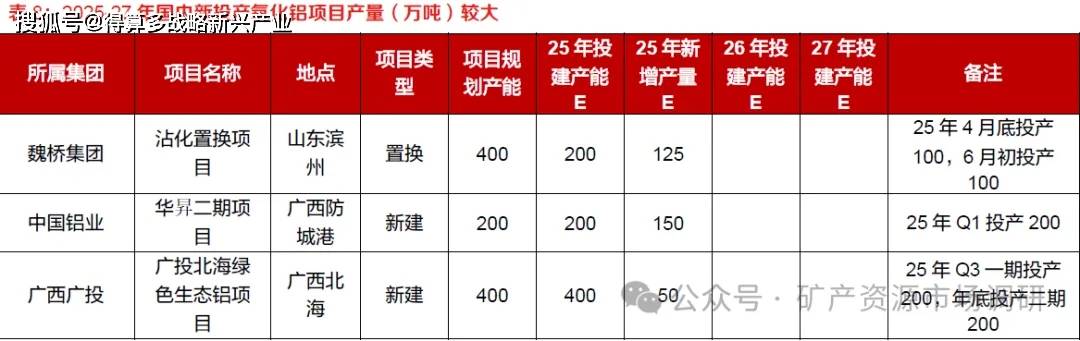 国内增量氧化铝项目持续落地,氧化铝中期供给过剩预期愈发清晰。2025年初规划于年内落地的氧化铝项目总产能高达 2230 万吨,较 2024 年底的 10195 万吨增长 22%。由于今年上半年氧化铝现货价格一度跌破氧化铝企业的生产现金成本价,导致国内部分规划中的氧化铝项目阶段性推迟甚至取消。随着氧化铝生产利润的逐渐修复,氧化铝项目的建设也同步恢复。我们预计除东方希望北海一期项目外,其余企业项目均有望按原计划于 2025-27 年落地,因此对于国内电解铝行业来说,上游原料氧化铝中期供给过剩的格局愈发清晰。