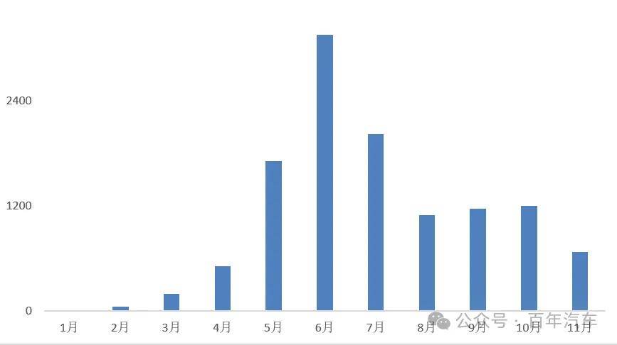 1、1-11月新能源汽车销量(交强险上险量)规模走势