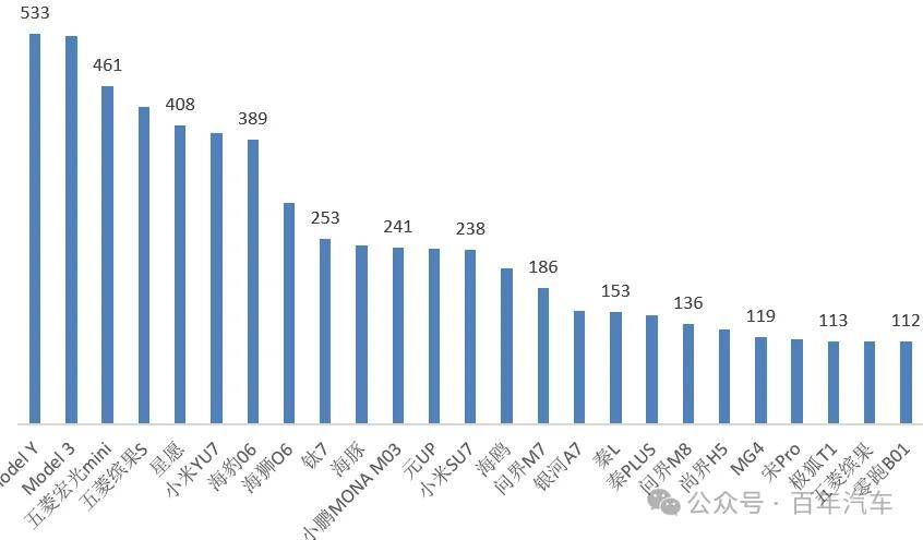 3、11月份新能源汽车销量——车型结构(排名前20车型)