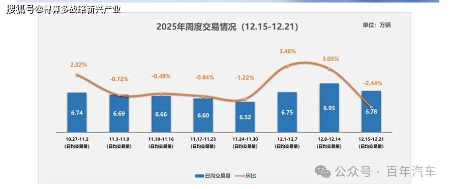 12月15日至21日二手车市场日均交易最达到6.78万辆,相较于上周的高位水平小幅回落2.44个百分点,不过和11月同期相比仍实现2.7%的增长,当前市场依I旧处在12月以来的上升通道中,预计12月全月交易量为180万辆。