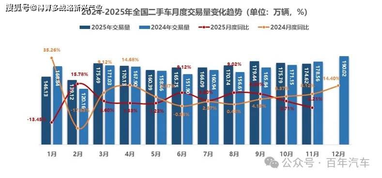 2025年11月,全国二手车市场交易量174.62万辆,环比下降0.67%,同比下降2.21%,交易金额为1119.36亿元。