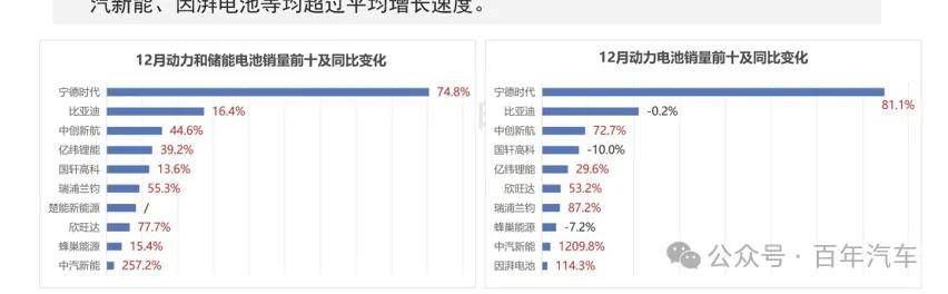 12月,动力和储能电池销量同比增长57.5%,宁德时代、欣旺达、中汽新能等均超过平均增长速度。
